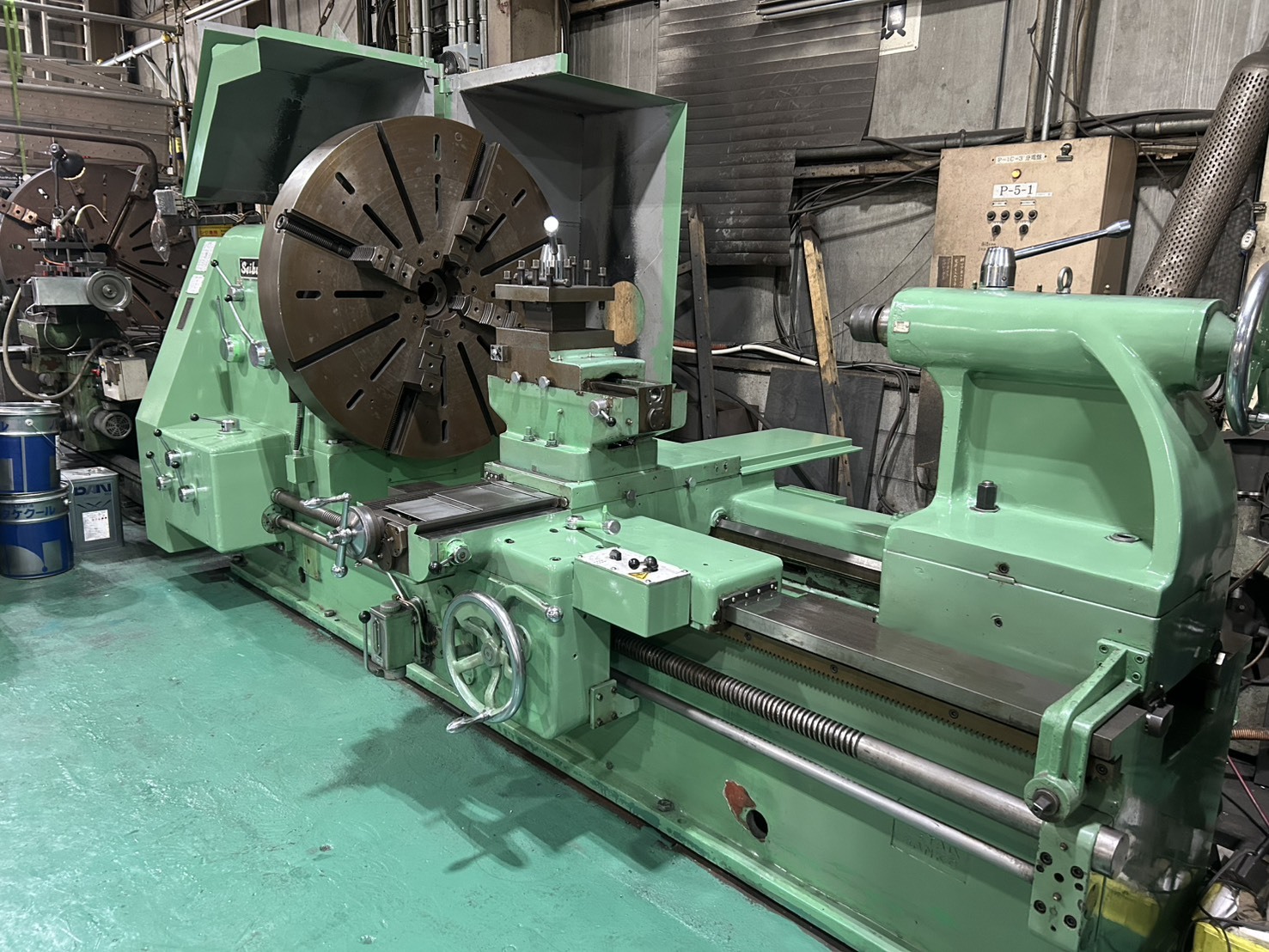 φ2100まで可能 心間距離 2000mm 刃物台ストローク900mm(自動送り装置付) 四方締め φ1500 |
